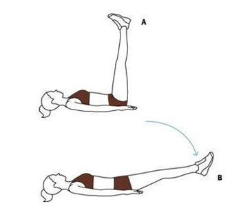 Động tác thứ 3: Bạn nằm ngửa, 2 tay dọc theo thân người, 2 chân giơ thẳng lên tạo góc 90 độ. Nâng chân lên rồi lại hạ xuống nhưng không chạm đất. Động tác này giúp bạn giảm mỡ bụng triệt để. Hít thở đều đặn khi nâng chân lên thì thở ra, hạ chân xuống thì hít vào, Thực hiện 3 lần mỗi lần 10 đến 12 cái.